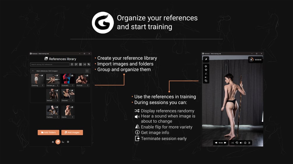 Gesturize is a training application designed to help artists of any level improve and refine their drawing skills. By purchasing Gesturize you will get both the Windows and MacOS versions for life, including future updates to this product.